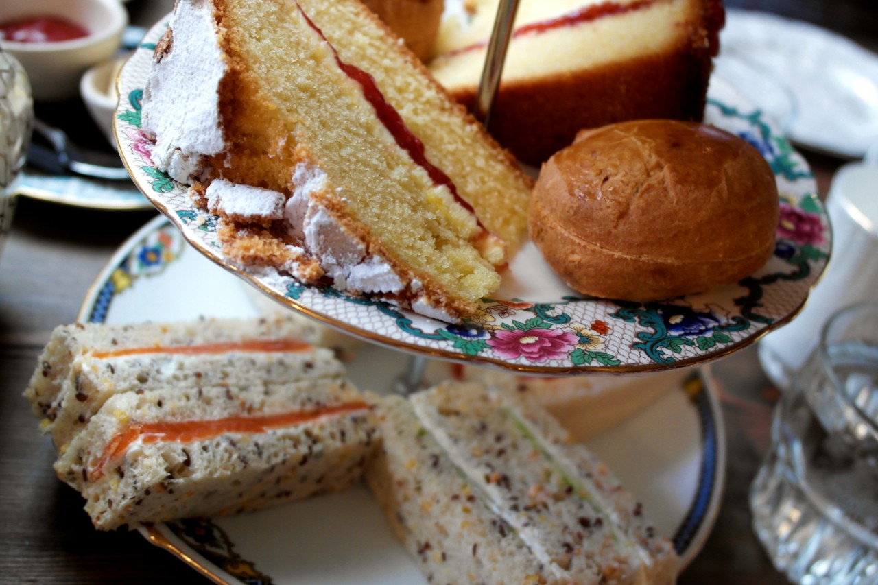 A traditional menu of sandwiches, scones and cakes had been prepared and served on a tiered cake stand, served alongside a tea of our choice (we all opted for Earl Grey, but numerous options were available), cream and jam. Plus that big bowl of gin punch.