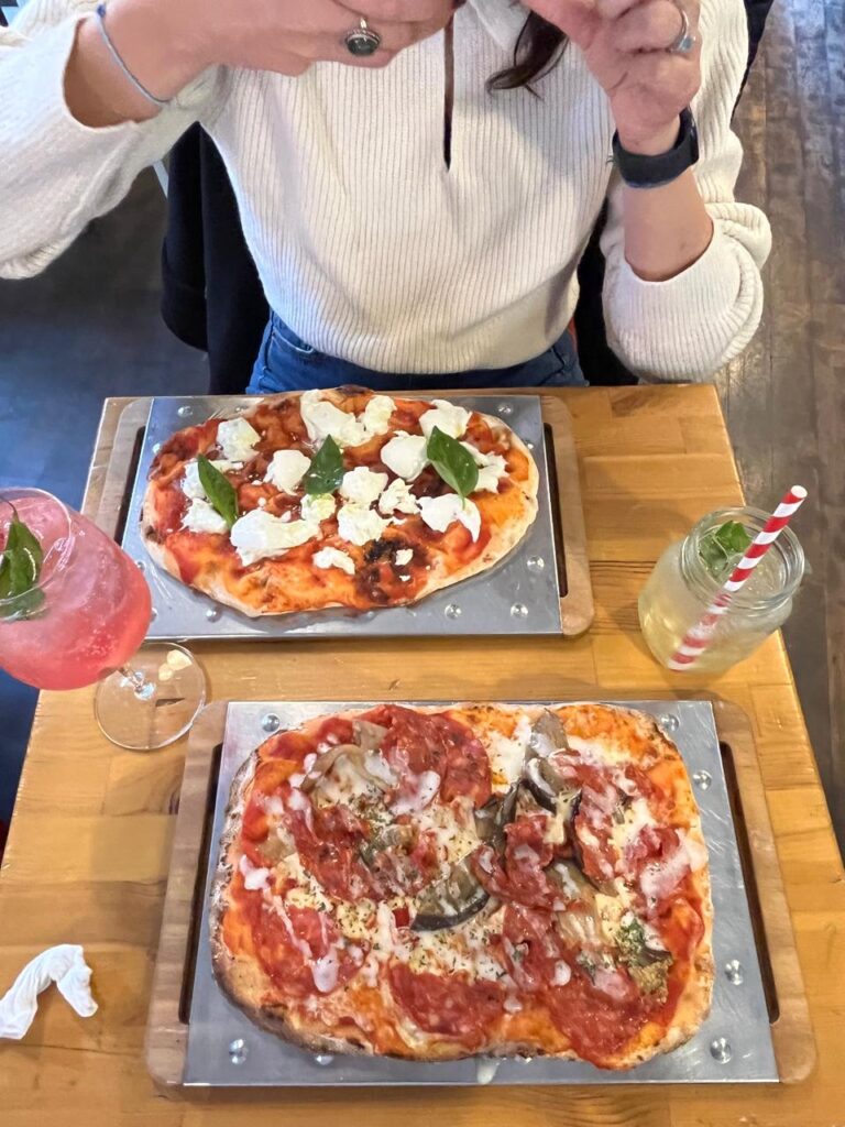 The margherita with mozzarella is my go-to choice- I’m a sucker for the simple option. You can taste the quality of the tomatoes and cheese used, which makes such a difference.
