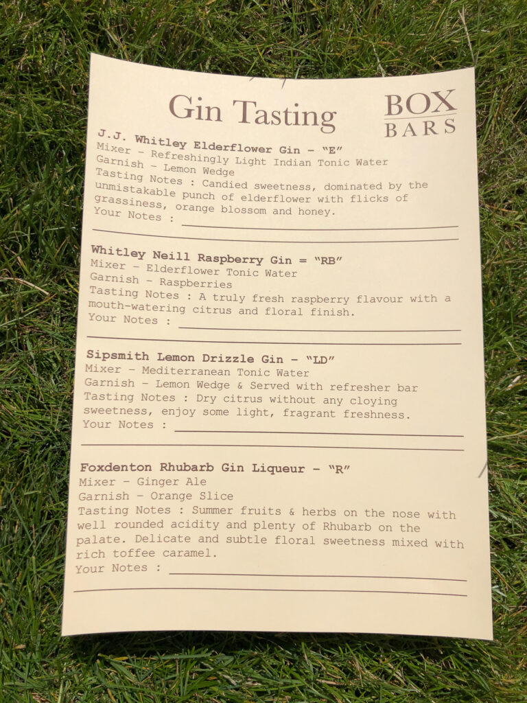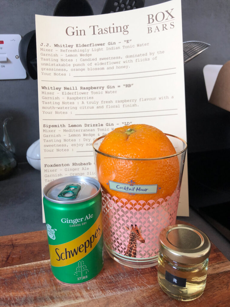 I went with the ‘Gin tasting’ box (£20) and was able to choose a flavour theme from fruity, non-fruity, or best of both. After reading the descriptions I was torn, but chose fruity in the end, sold by the Sipsmith Lemon Drizzle gin (yum!).