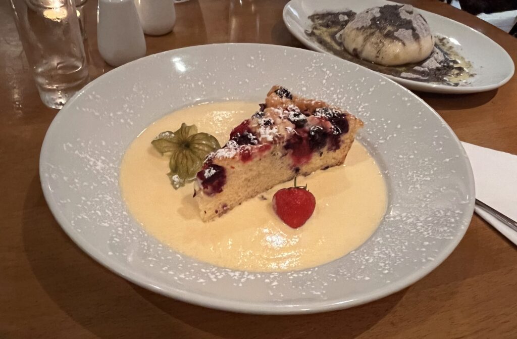 My main course was Halusky, the signature dish of Slovakia. These little potato dumplings are pillowy soft comfort food, usually slathered with cheese and bacon. The veggie version (£12.95) was rich with smoked cheese, mushrooms, and satisfaction. The guinea fowl with a thyme-inflected sauce on red cabbage (£16.95) was more delicate, though equally delicious. An accompanying potato gratin was decadent without being too heavy.
