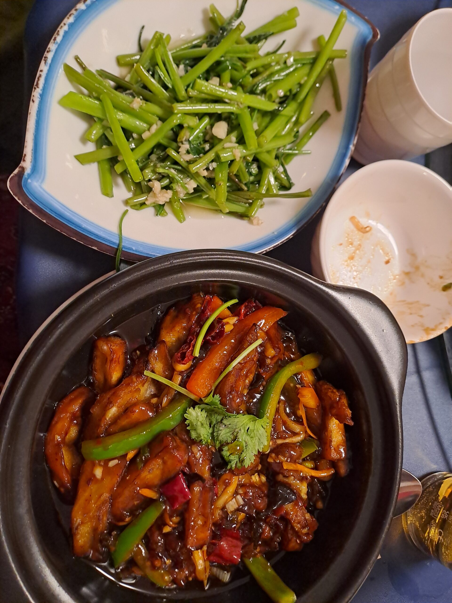The morning glory – a Chinese green covered in garlic, can’t go wrong. And the spicy, garlicy fried green beans are a must-order.