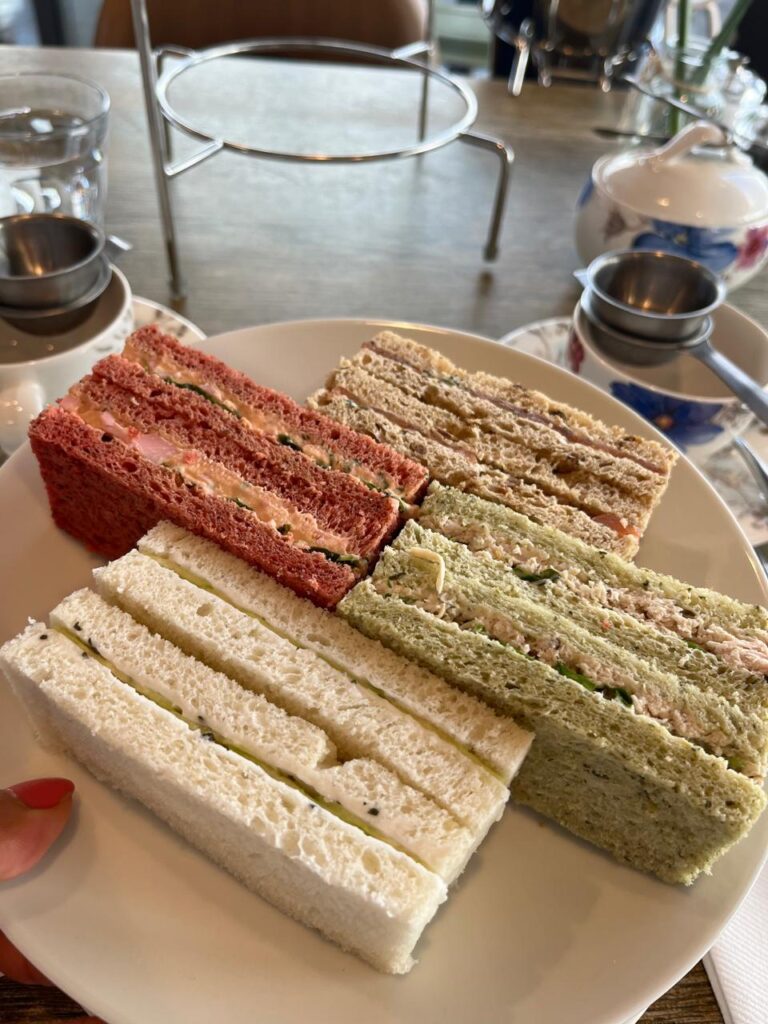 The sandwich selection was good. My favourite was the cucumber, and my friend enjoyed the smoked salmon. The bread was fresh, and there was a good variety of choices.