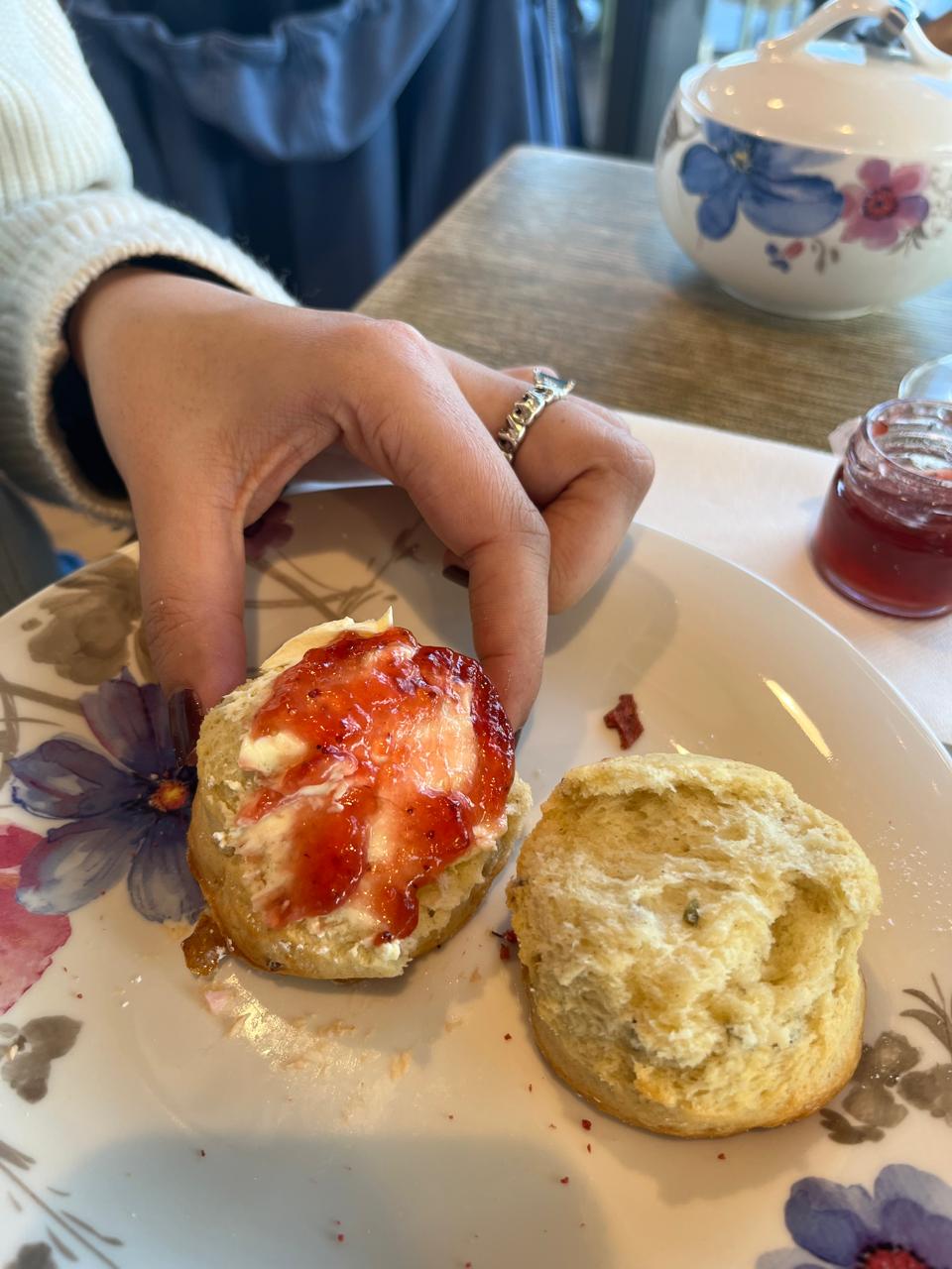 Before the nitty-gritties, I believe that for the scones, the correct order is cream, then jam on top (felt like I needed to get that out of the way).