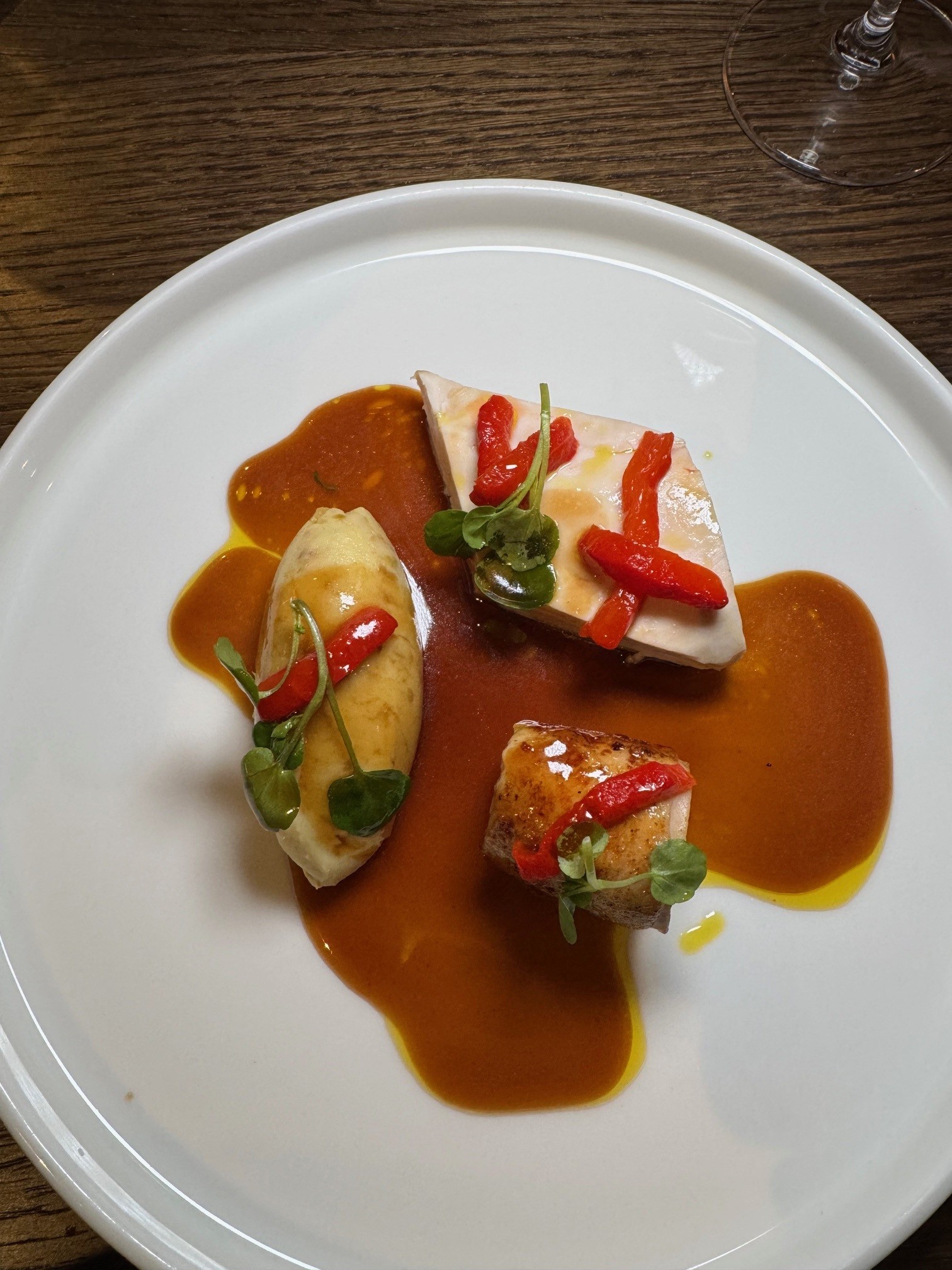 Again, when I talk about contrasts of flavour and textures, this comes into play again. The chicken breast was so soft and juicy, as well as being perfectly seasoned which was complimented so well by the sweet red pepper. The other elements of the dish being the rolled thigh, encased in smoky charred skin was delicious, and the green olive pomme purée was divine, all pulled together with a well-balanced jus.