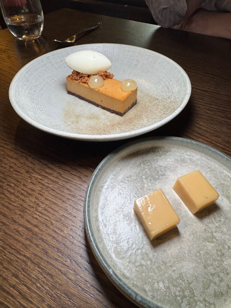 We opted for the caramelised white chocolate tart, which was rich and sweet with contrasting yuzu favours in the form of a gel. You also get some of the homemade fudge as an additional sweet treat.