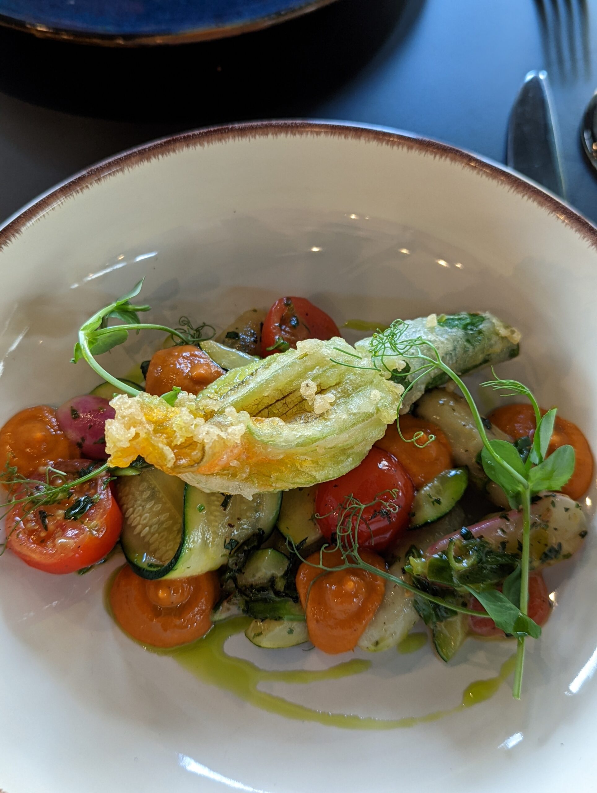 For mains, Holly had the Tempura Courgette Flower, Herb Gnocchi, Spring Vegetables, Romesco Sauce (£19.50). This dish looked and tasted divine. It was perfect for the warm weather and packed full of flavour.