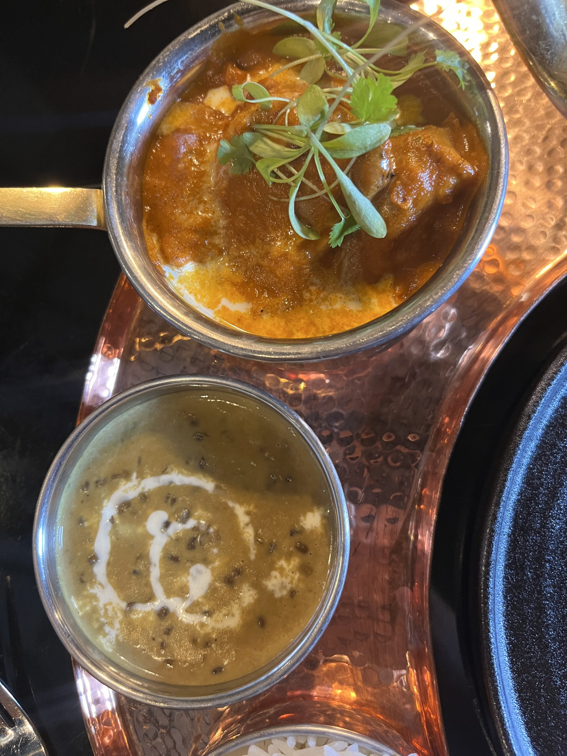 For mains, we had the ambassador butter chicken and Goan king prawn curry.