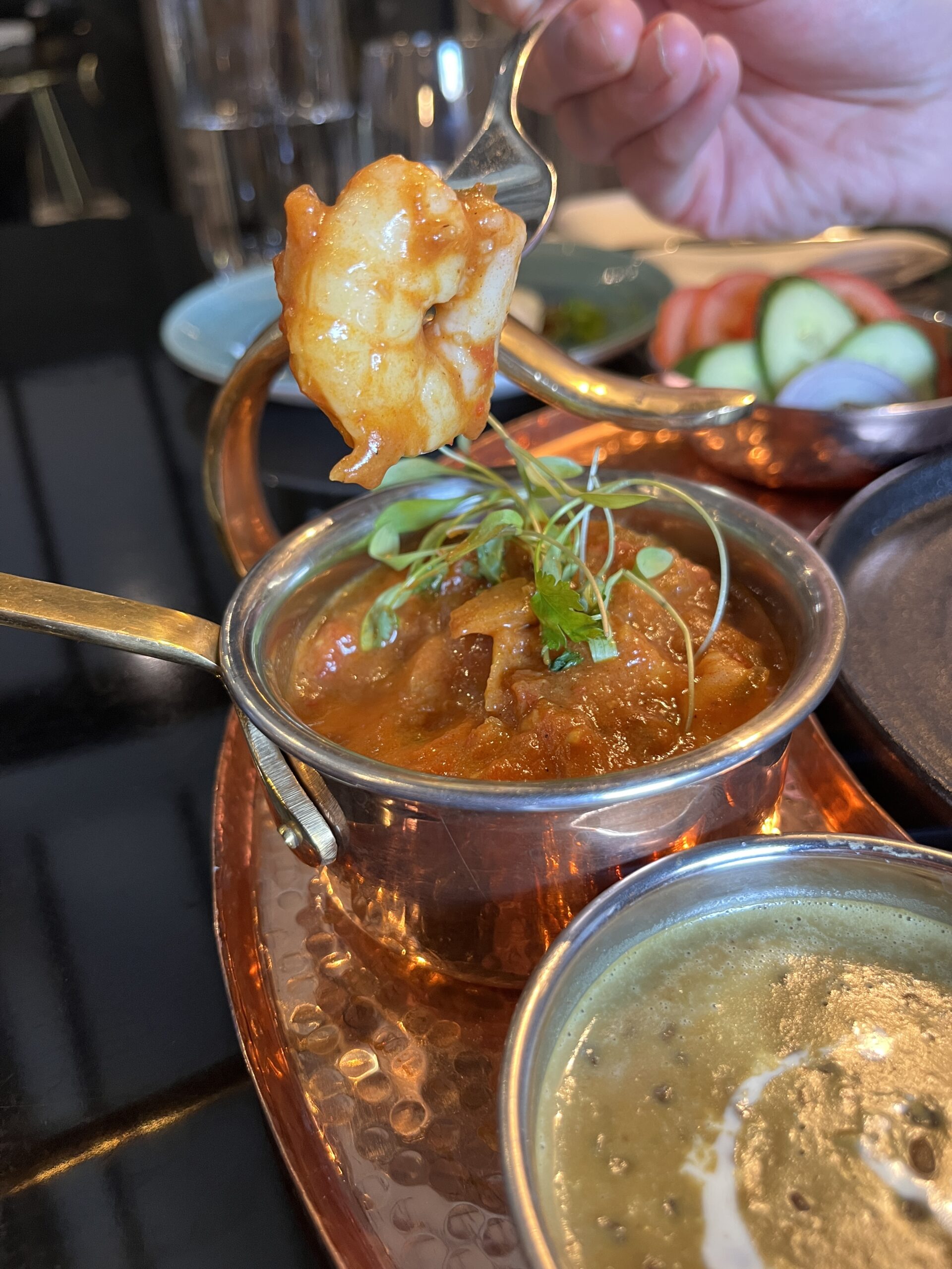 The butter chicken was rich and creamy, while the prawn curry had some real depth and a nice kick. The dhal was so rich, earthy and warming, different to dhal that I make at home, with the grain soaked in ginger and slow cooked – it was morish and you could tell it had been cooked slowly, with care.