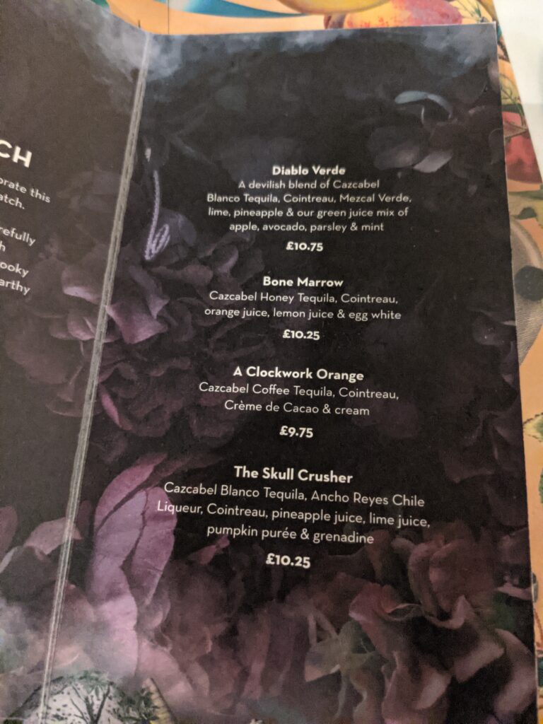I let the barman suggest my final cocktail choice and was a little worried when he suggested the cocktail with chili and pumpkin puree in it. Chili and pumpkin puree in a cocktail?! Surprisingly, it turned out to be the best one. The sweetness of the pineapple balanced out the chilli, and the lime gave it the fresh zing it needed. I highly recommend it if you want to try something snappy and different this Halloween season.
