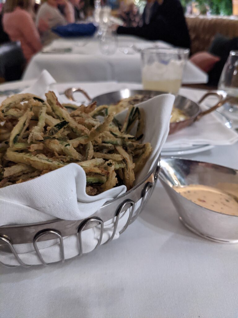 I have to get the zucchini fritti (£5.95) as a starter every time I go to one of the Ivy branches. The courgettes are finely sliced and deep-fried in batter. They’re SO moreish, but you get such a generous portion it works out well. They come with a lemon, chilli and mint yoghurt which gives you the zestiness you crave to cut through.