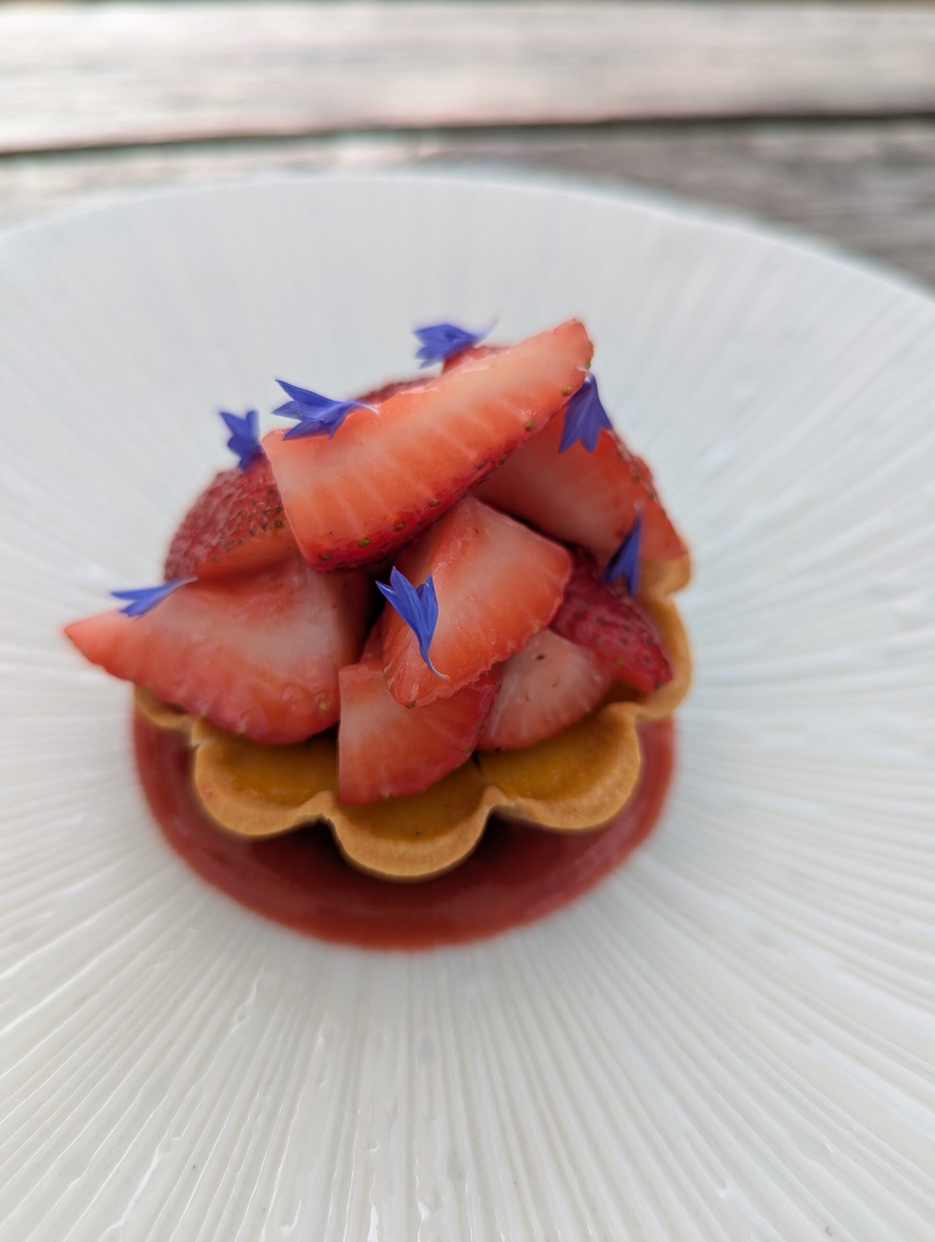 The strawberry custard tart was light and fragrant, served with a refreshing elderflower fizz that added a delicate sparkle – vanilla tinged and a sherbety type taste with a delicious foam on top. The upside-down pineapple cake was rich and nostalgic, served warm with a creamy coconut ice cream, a tangy pineapple sauce and a crisp pineapple tuile that brought texture and flair. Imagine a pina colada in desert form.
