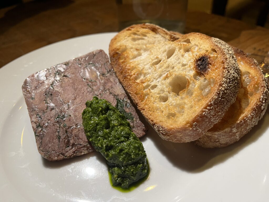 It was an auspicious beginning. The rich meaty terrine married well with the herby flavours of the lively salsa verde on the side, especially when eaten with a bite of the delicious bread. Even better, my glass of rubicone was a lovely accompaniment to this starter, even though I’d ordered it to go with my main.