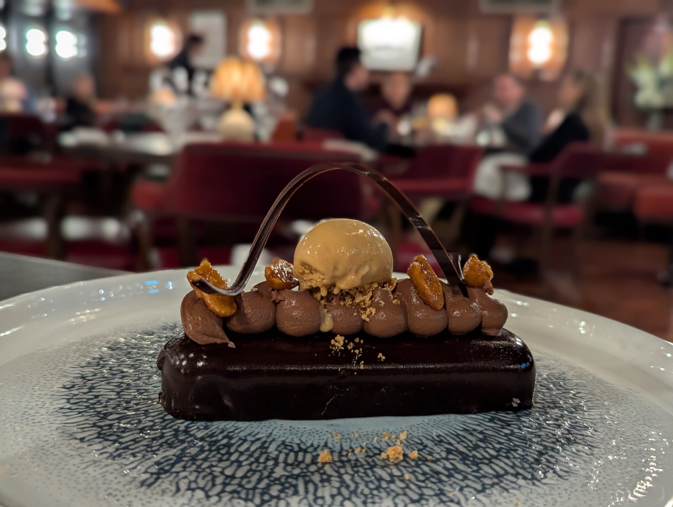 Dessert brought a playful touch with the intriguingly named N.Y.E.D.T.T., imagine the inside of a treacle tart with a dob of orange cream on top, a great playful palette cleanser before the real showcase of the evening the peanut parfait (imagine a very boujee snickers ice cream!) featuring salted caramel, chocolate, and caramelised milk. Each bite balanced sweetness with a subtle depth, a satisfying conclusion to the evening.